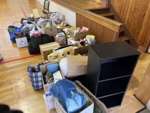 生徒さんや保護者の方々のご協力を得て、家庭での不用品やぬいぐるみ、おもちゃなど、たくさん集めて頂きました。