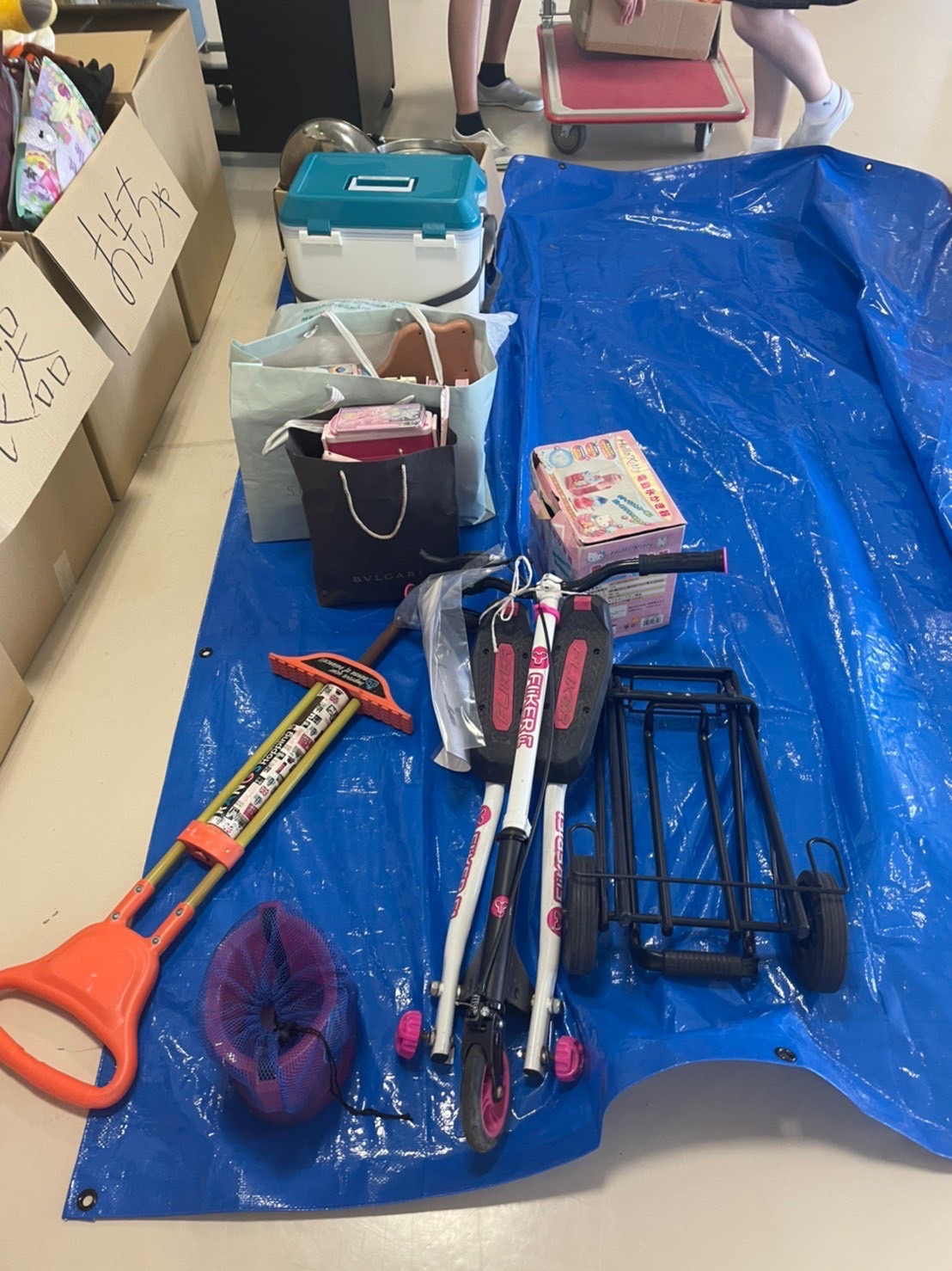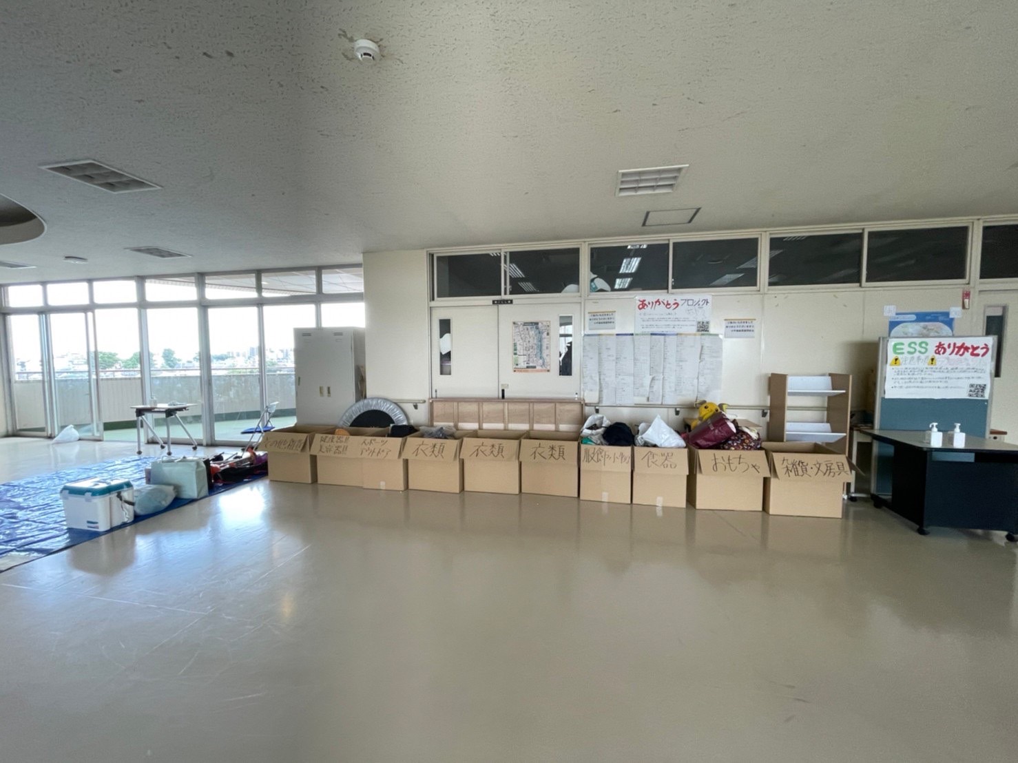 生徒さんや保護者の方々のご協力を得て、家庭での不用品やぬいぐるみ、衣類など、たくさん集めて頂きました。
